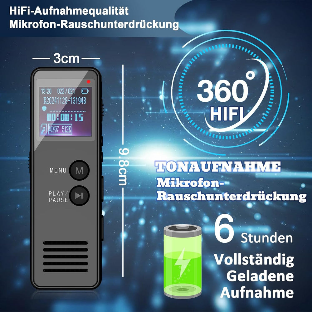64GB Digitales Diktiergerät mit Sprachsteuerung, Mini Voice Recorder mit Wiedergabe, HiFi Aufnahmege
