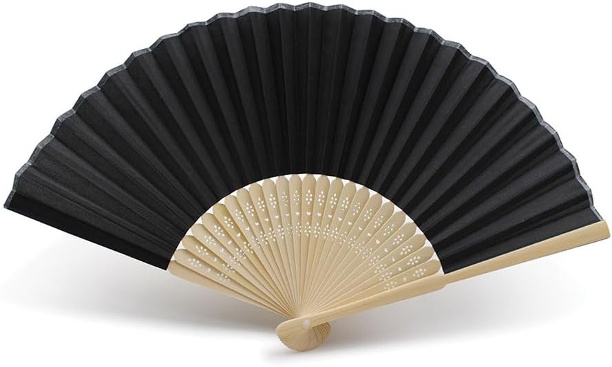 Schwarz Qualitätsfächer aus Stoff und Bambus – Für Hochzeit, Taufe, Feier oder Veranstaltung im Frei