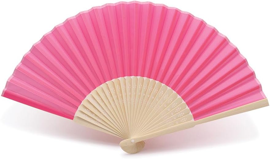 OLILLY - 50 hochwertige Fächer aus hellrosa Stoff und Bambus (Pink, 50 Fächer) Hot Pink 50 Eventails