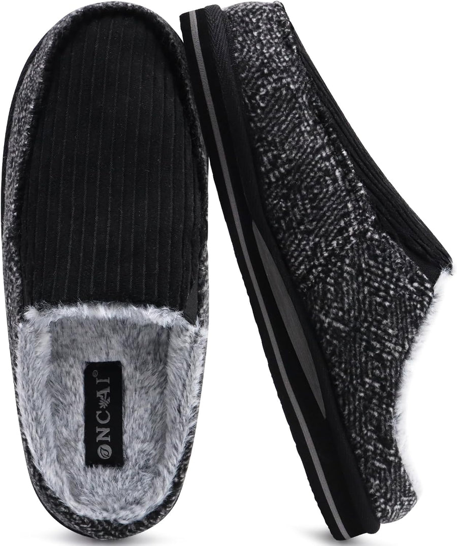ONCAI Hausschuhe Herren Komfort Pantoffeln Plüsch Streifen Hüttenschuhe Wärme Cord Flauschig Slipper