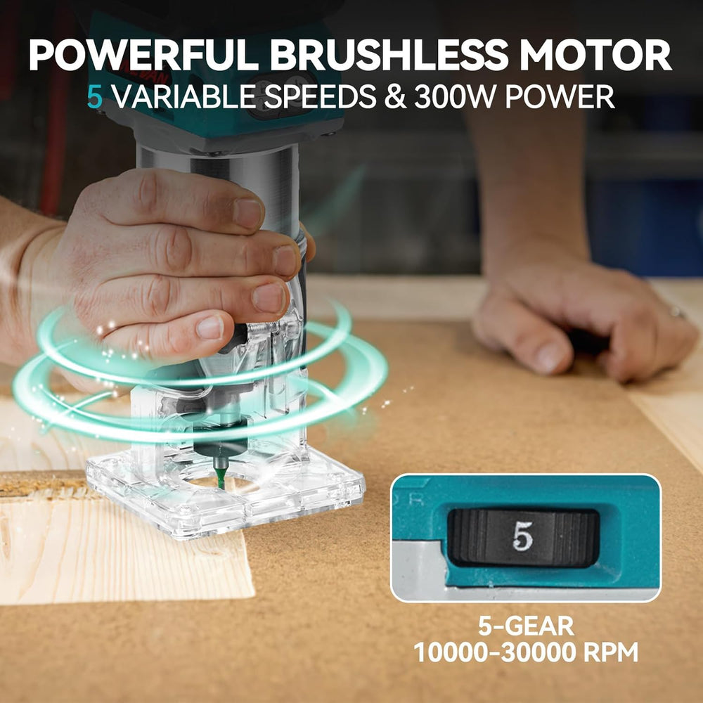 ONEVAN Akku Oberfräse für Makita 18V, Bürstenloser Kantenfräse Einhandfräse Akku Holztrimmer Katsu T