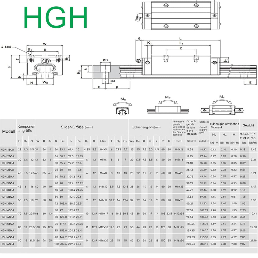 ONLISUM HGR15 300mm 2 Stück Linearschiene mit 4 Stück HGH15CA Lagerkissen Blöcke 15mm für DIY 3D Dru