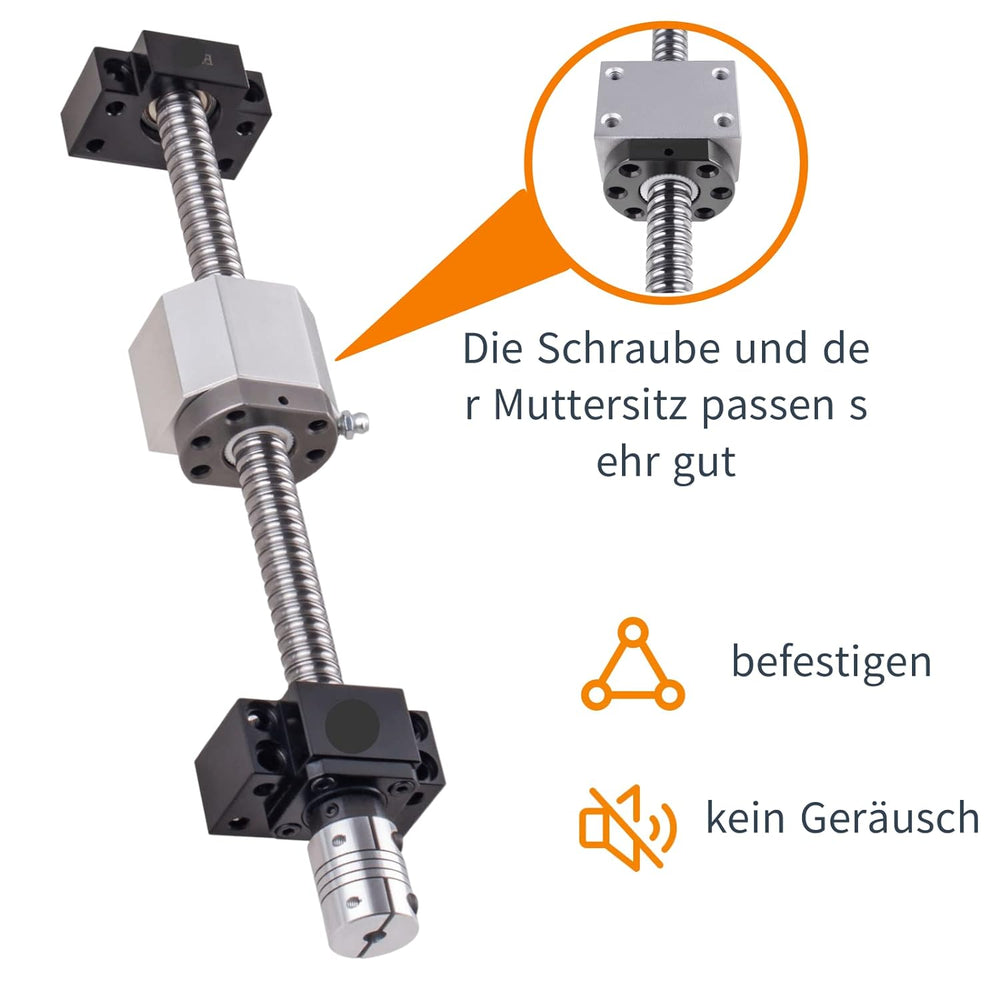 ONLISUM SFU1204 Kugelumlaufspindel 1000mm Gewindespindel Edelstahl Kugelumlaufspindel mit BK10/BF10