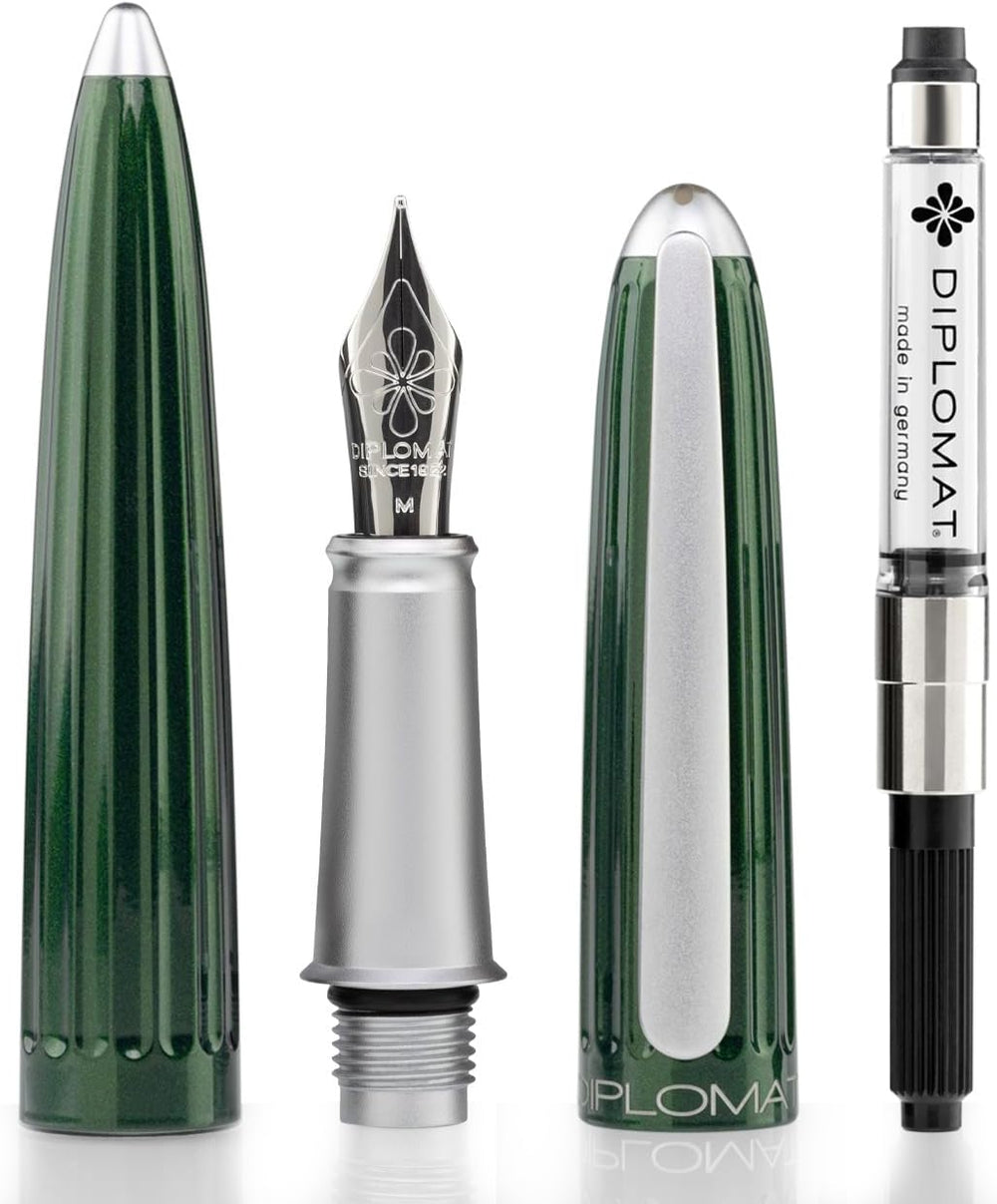 Diplomat Aero Füllhalter in grün mit Edelstahlfeder M und farblich perfekt passender Füllhaltertinte