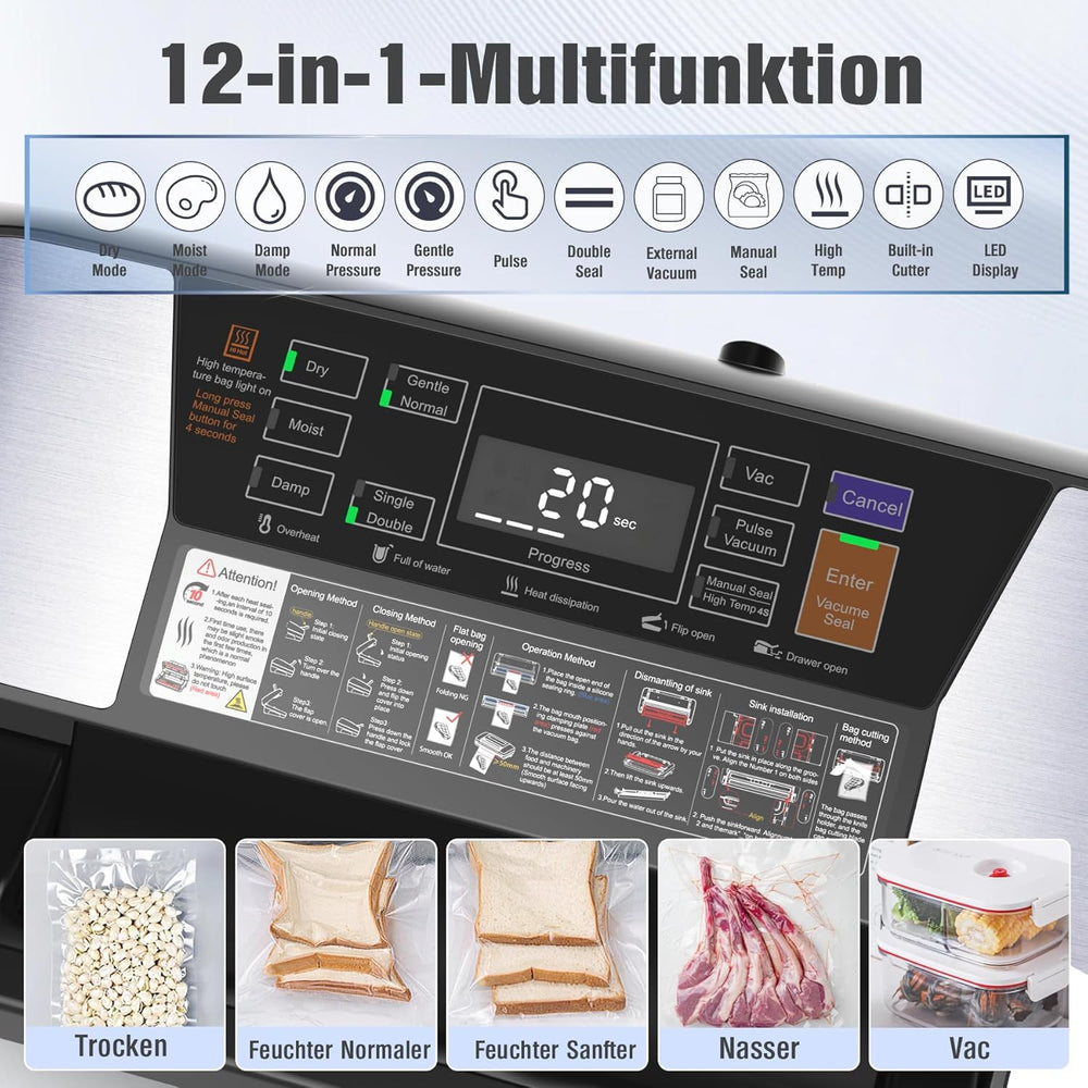 OidoZac vacuum Vakuumiergerät, automatisches Lebensmittel- Folienschweissgeräte, 5 Modi mit 15 Versi