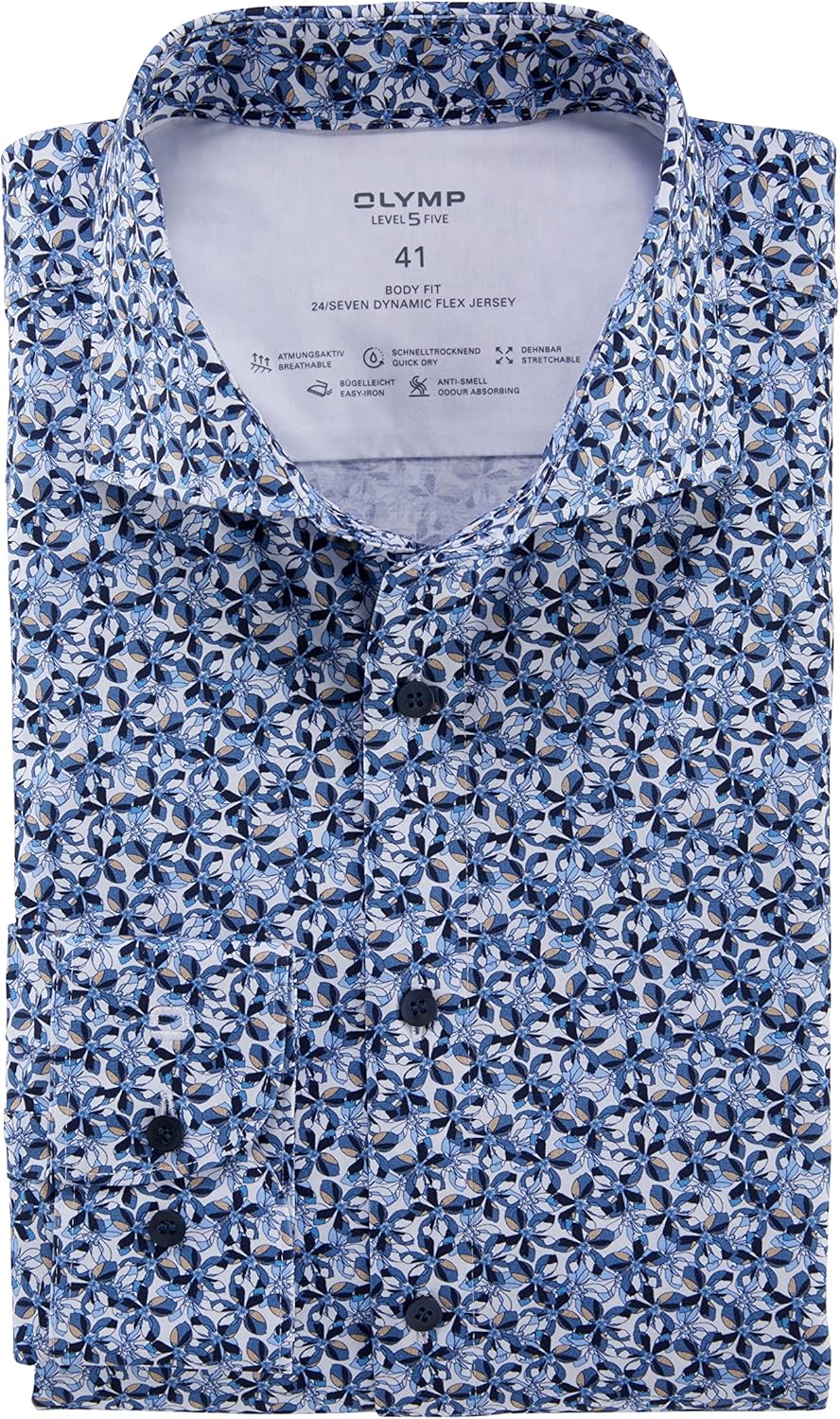 OLYMP Herren Businesshemd Langarm Level Five 24/Seven,Rotationsdruck,Body fit,Modern Kent,bleu 11,37