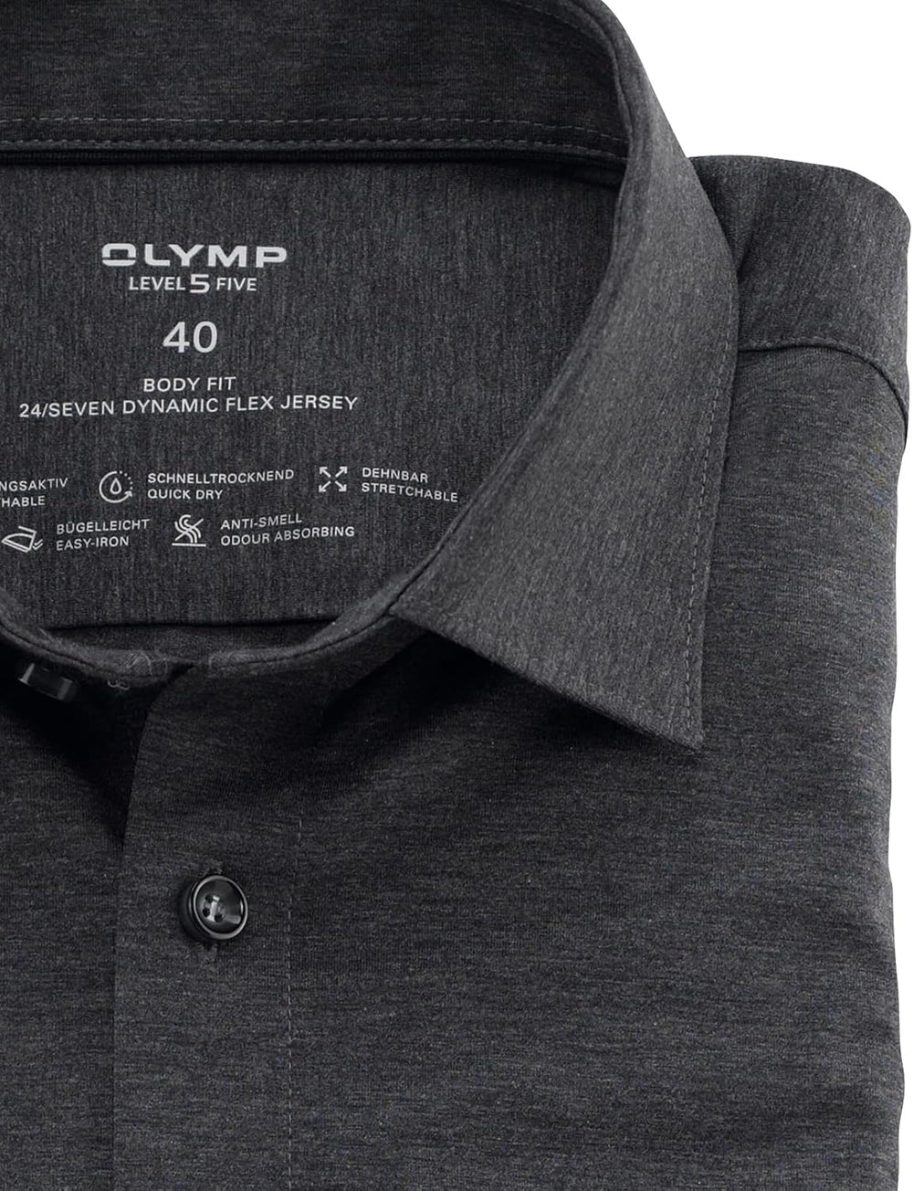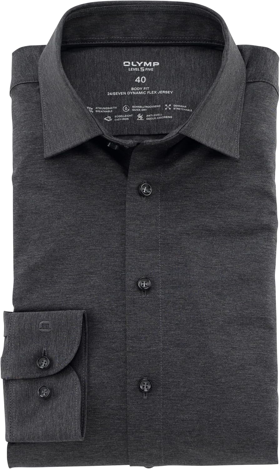 OLYMP Herren Businesshemd Langarm Level Five 24/Seven,Uni,Body fit,Kent-Kragen 37 Grau 62, 37 Grau 6