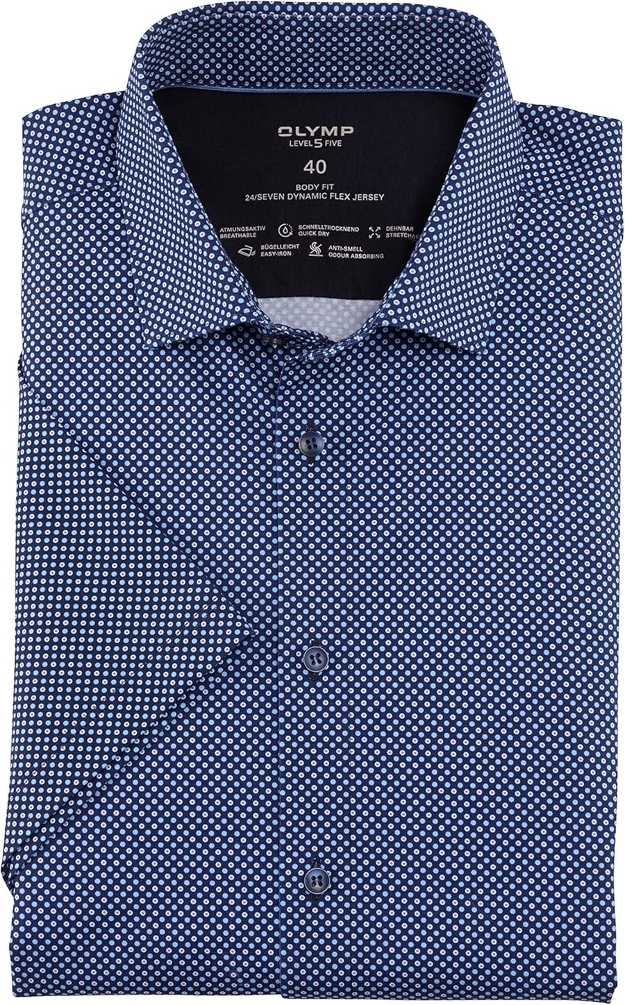 OLYMP Herren Businesshemd Kurzarm Level Five 24/Seven,Body fit,Modern Kent 37 Bleu 11, 37 Bleu 11