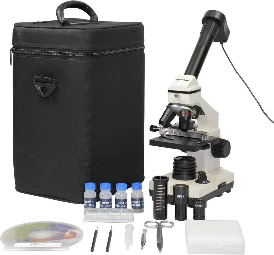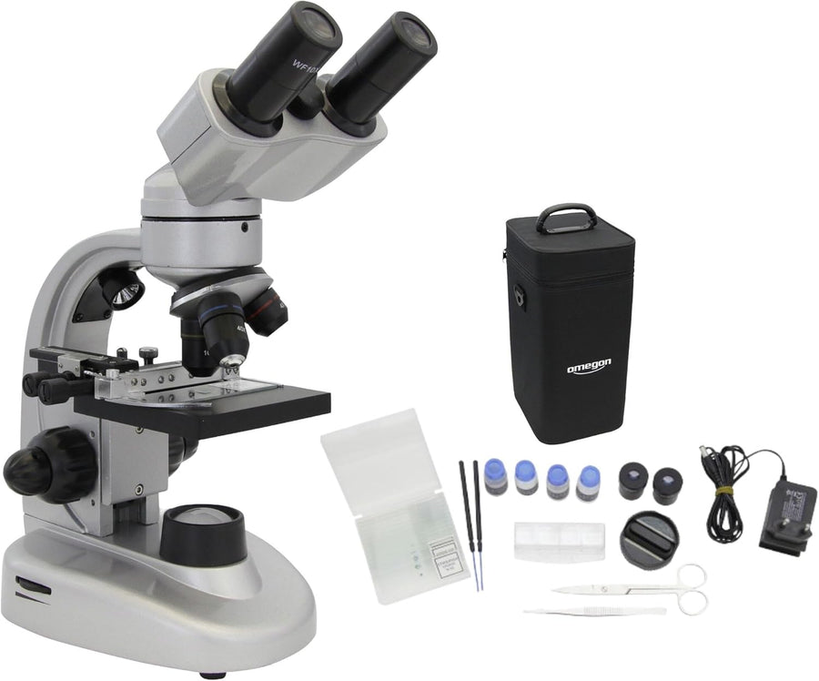 Omegon Mikroskop Binofield, 40x-800x, LED | Präzise Beobachtungen mit beidäugigem Sehen | Für Schule