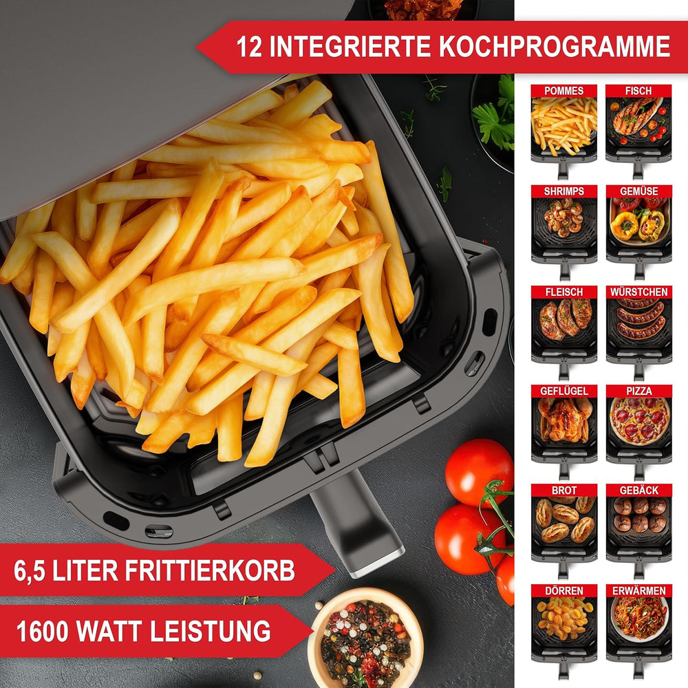 ONBEST Heissluftfritteuse mit grossem Sichtfenster & 12 Kochprogrammen – XL Airfryer mit 6,5 Liter,1