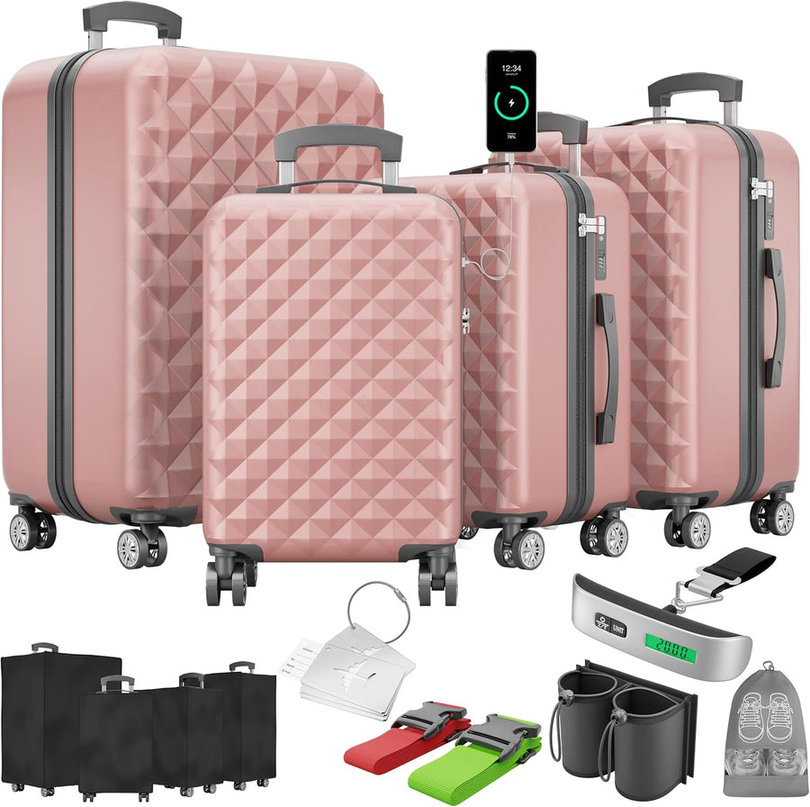Onbest Premium Kofferset 4-TLG. – Hartschalenkoffer mit TSA-Lock, USB-Anschluss – 1x Kofferwaage, 2X