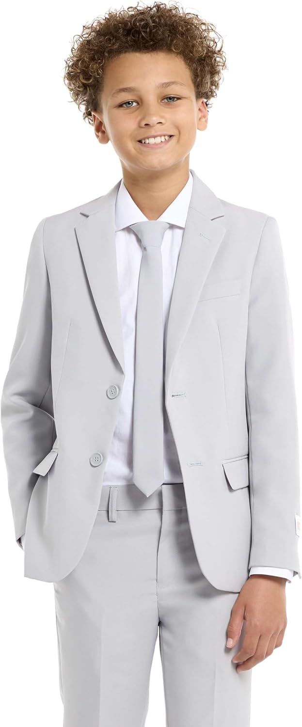 OppoSuits Groovy Grey Einfarbiger Anzug für Jungen - Abschlussball- und Hochzeitsfeier-Outfit - Inkl