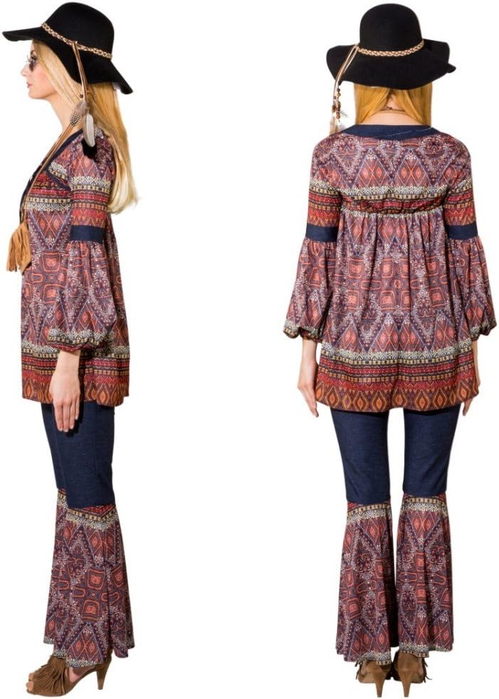 Damen Hippie Kostüm Gr. 34/36 Tunika Schlaghose Coachella Style 70er Jahre 34-36, 34-36