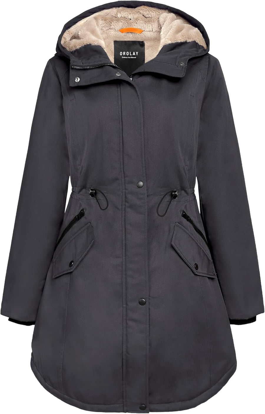 Orolay Damen Kapuzen Fleece Gefüttert Parka-Mantel Mittlere Länge Winter Draussen Gepolstert Jacke X