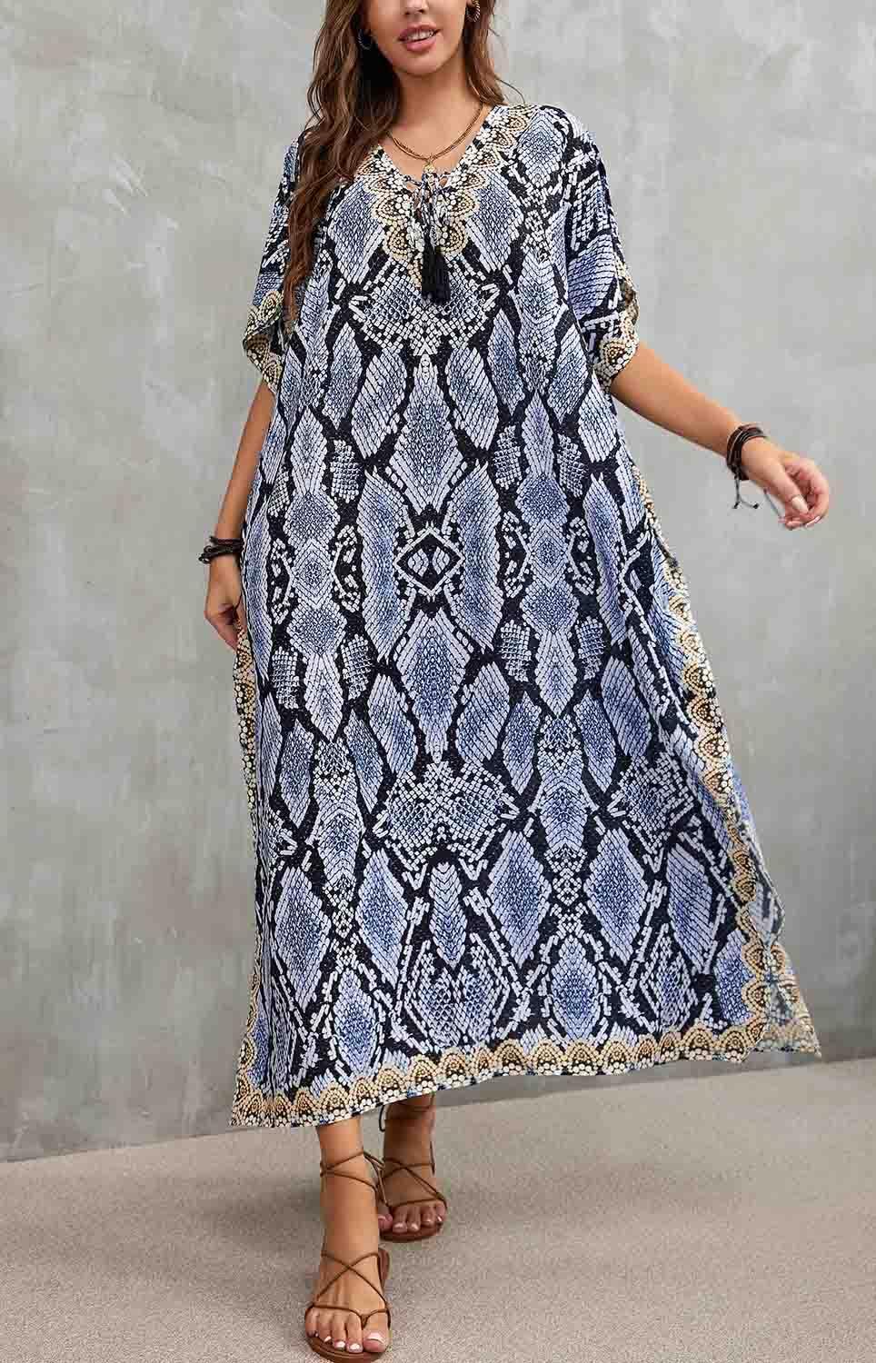 Orshoy Damen Bikini Cover Up Sommerkleid Lang Kaftan Maxikleid Strandponcho V-Ausschnitt Strandkleid