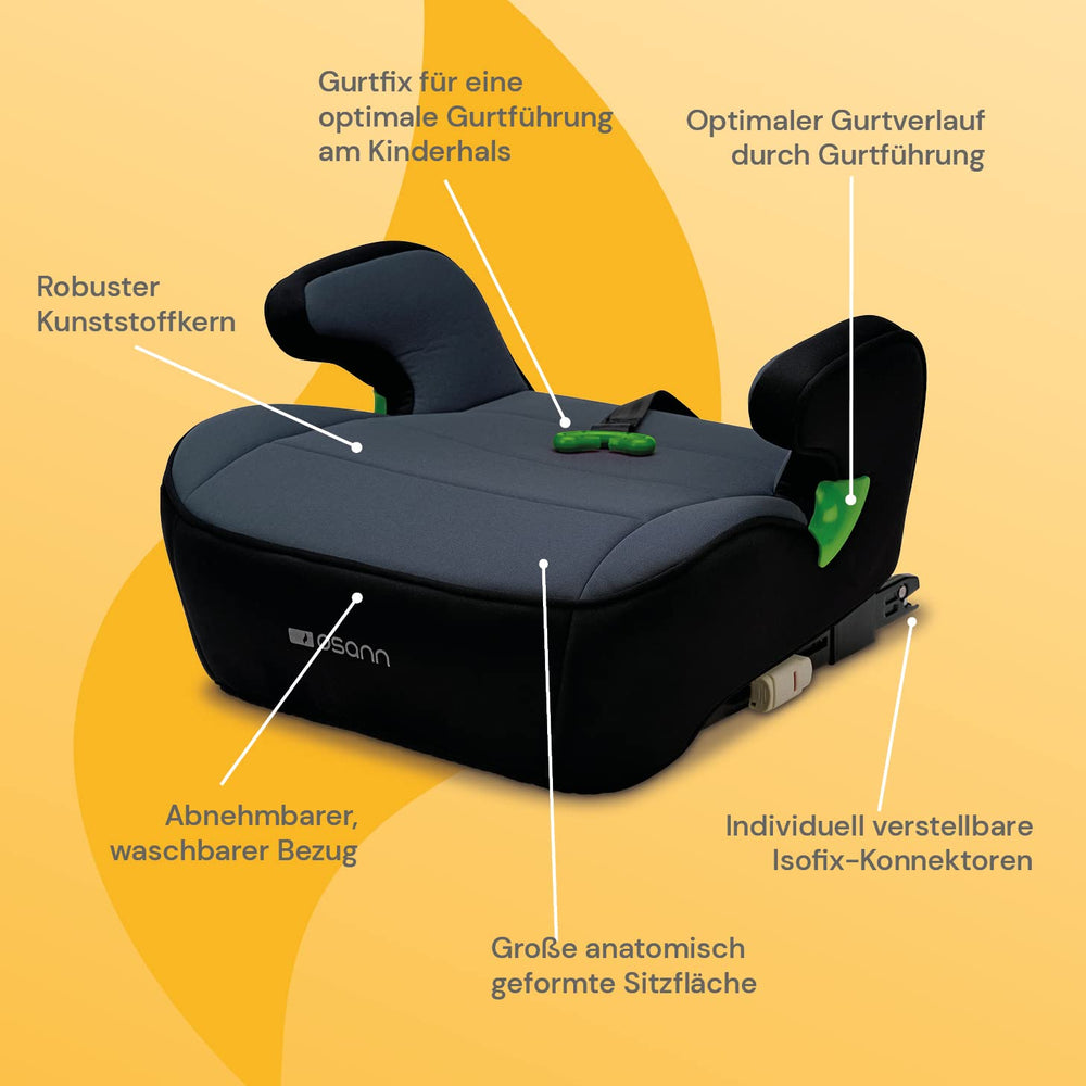 Osann Junior Isofix Gurtfix i-Size Sitzerhöhung mit Isofix Auto Kinder (126-150 cm) - Nero i-Size Ne