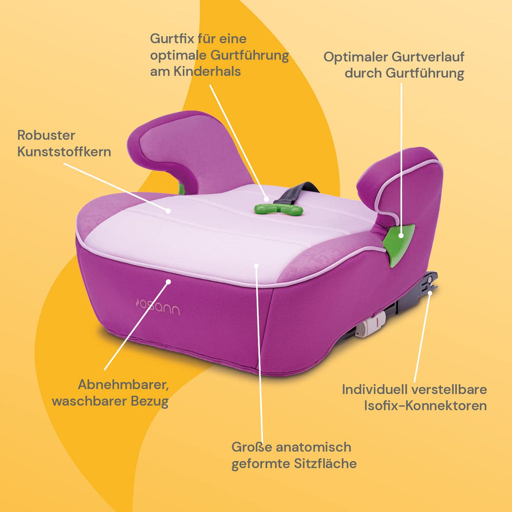 Osann Junior Isofix Gurtfix i-Size Sitzerhöhung mit Isofix Auto Kinder (126-150 cm) - Pixel Berry i-