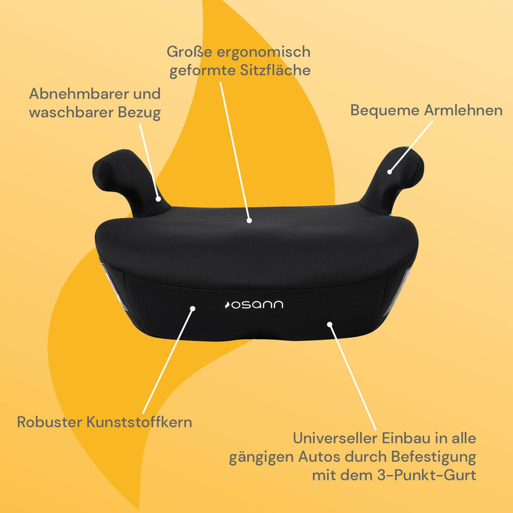 Osann Kinderautositz Boost 135-150 cm in Schwarz | Ergonomische Sitzerhöhung mit 3-Punkt-Gurt | Abne