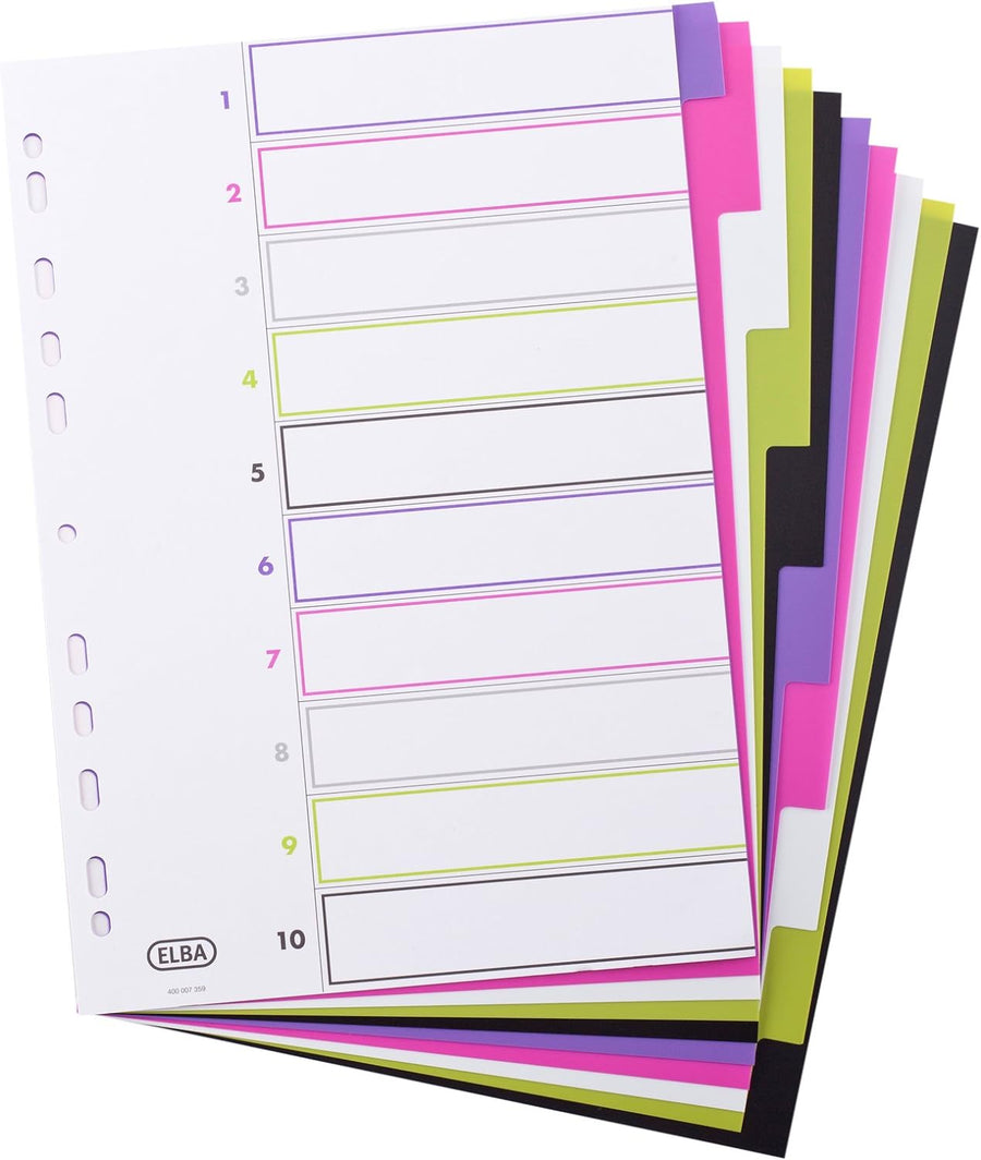 Oxford A4 Kunststoff-Register myColour, blanko, 10 Blatt, 10-teilig, 20 Stück 20 Register 10-teilig,