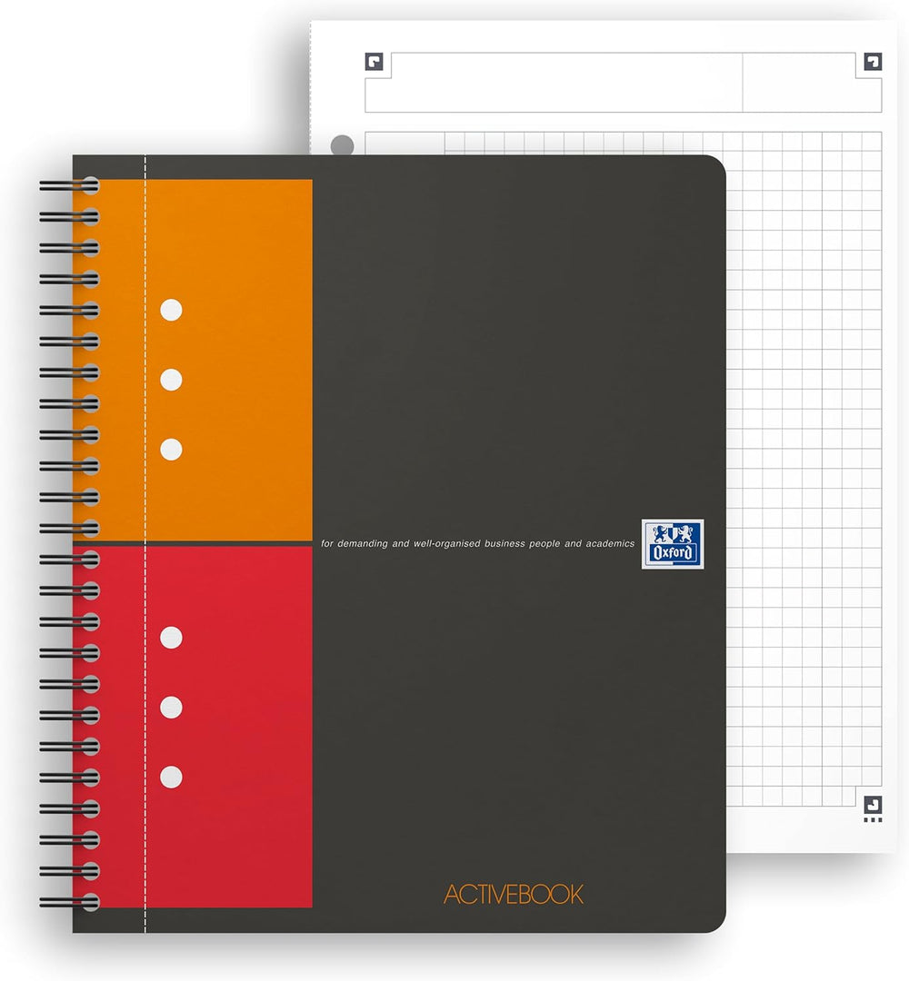 Oxford Activebook Interantional A5, kariert, 160 Seiten, versetzbares Register, Dokumententasche, 5