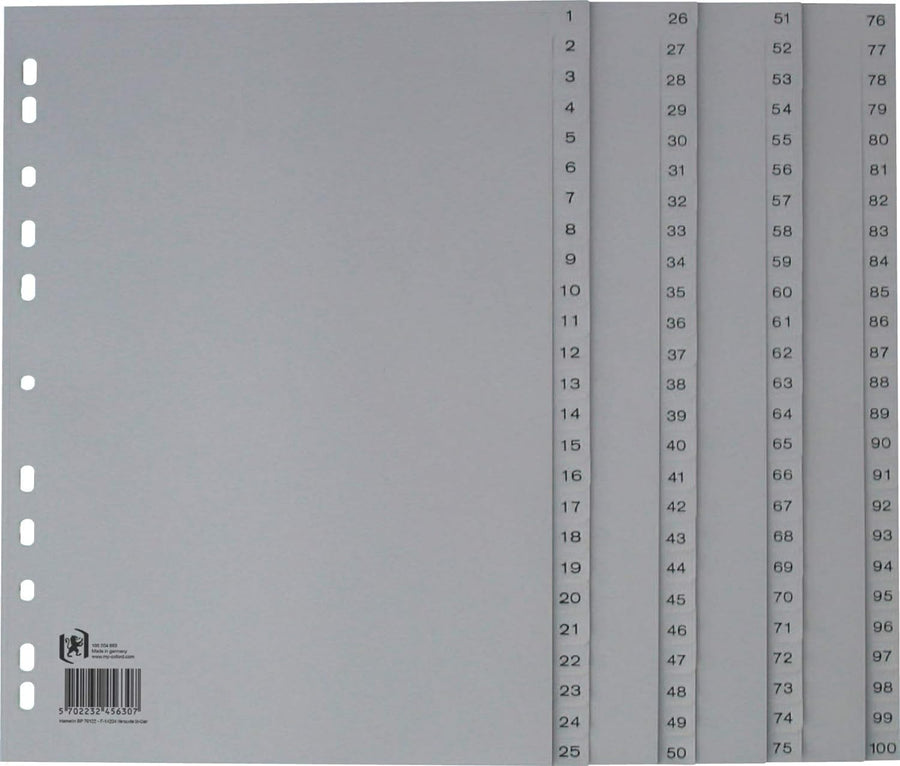Oxford A4 Kunststoff-Register,100-teilig, ohne Deckblatt, grau, 5 Stück 5 Register, 5 Register