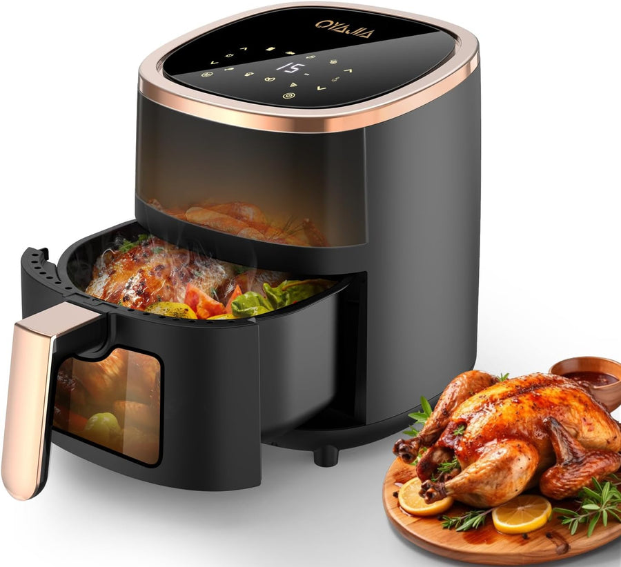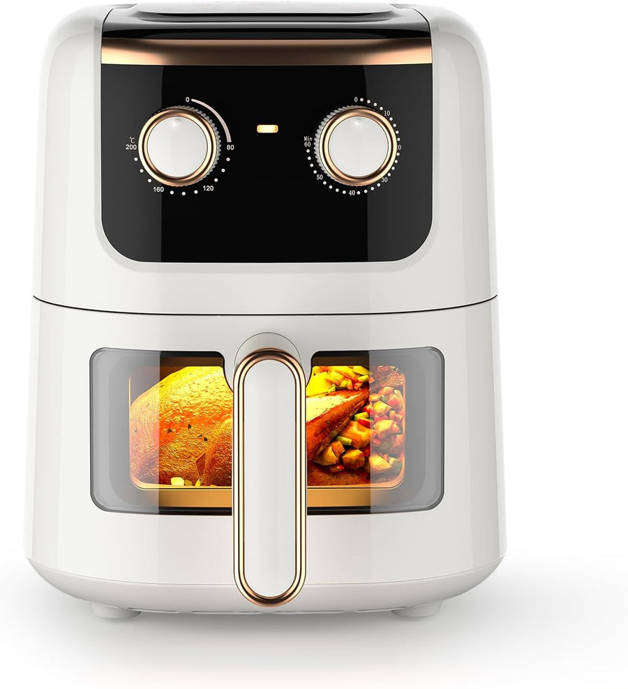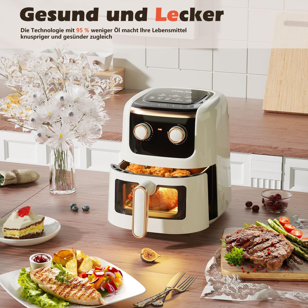 Oyajia 5L Heissluftfritteuse mit Sichtfenster, mit Manueller Drehtaste, Spülmaschinenfest, Gesundes