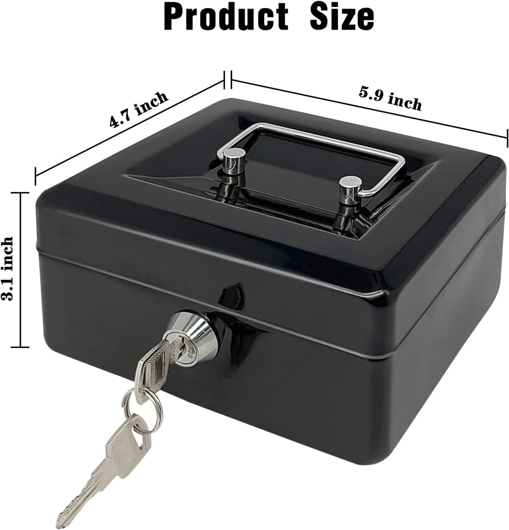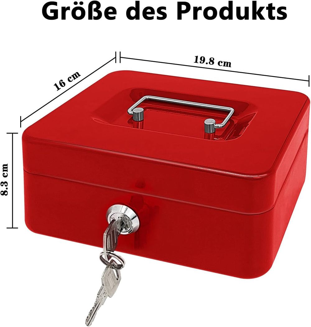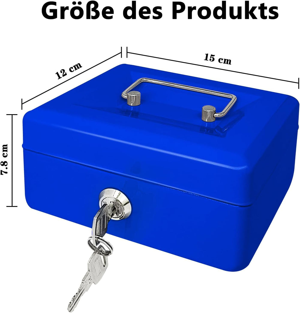 Stahlkassette mit Schlüsselschloss, Metall-Geldkassette mit Geldfach, Geldaufbewahrungsbox mit absch