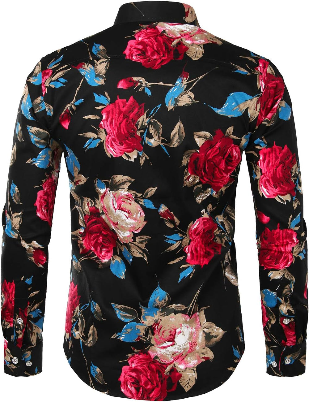 PARKLEES Herren Geblümt Langarm Sommer Freizeithemd Hawaiihemd Muster Langarmhemd S 101-schwarz, S 1