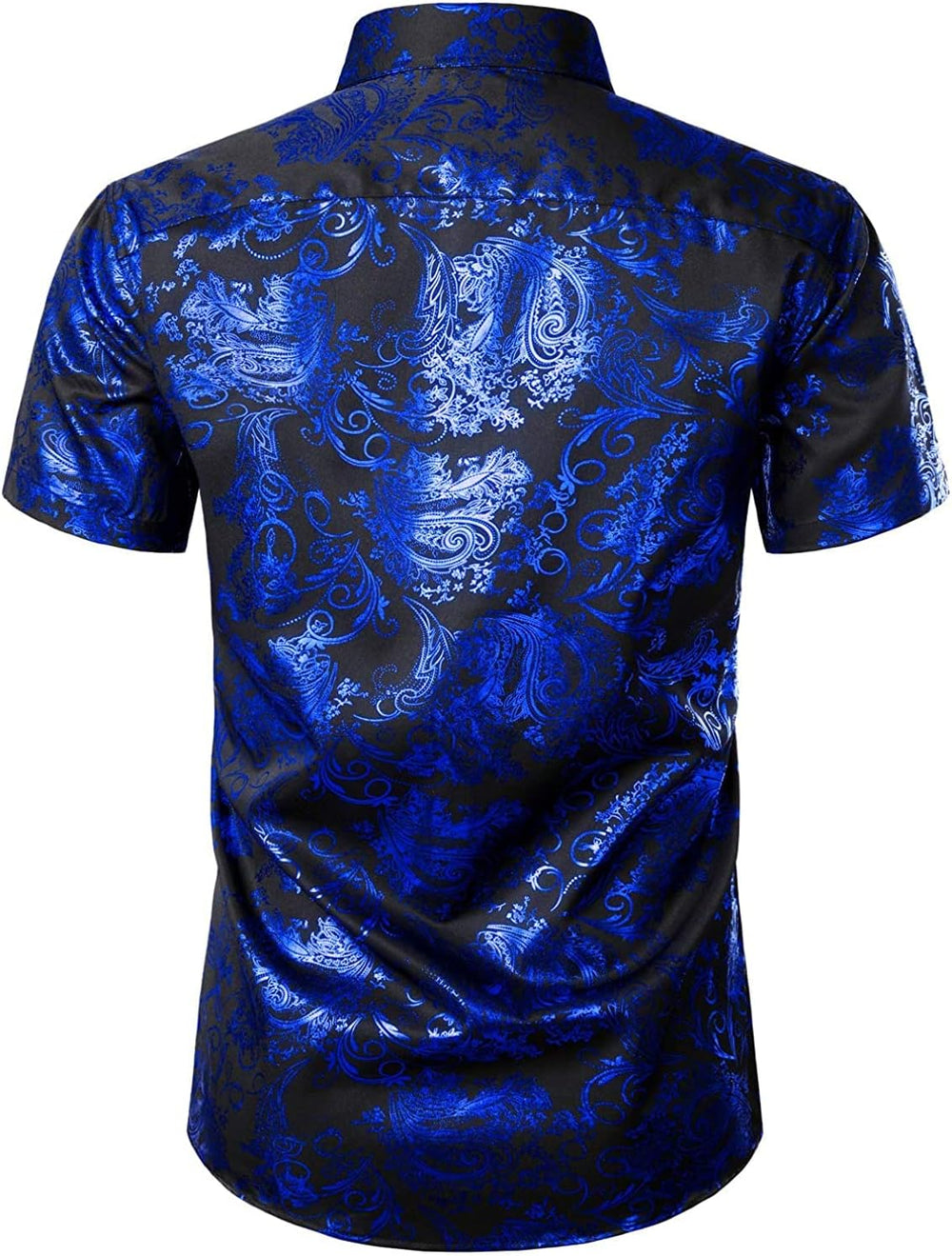 PARKLEES Herren Hipster Gold Rose Gedruckt Slim Fit Kurzarm Button Down Kleid Shirts M Cl23-königsbl