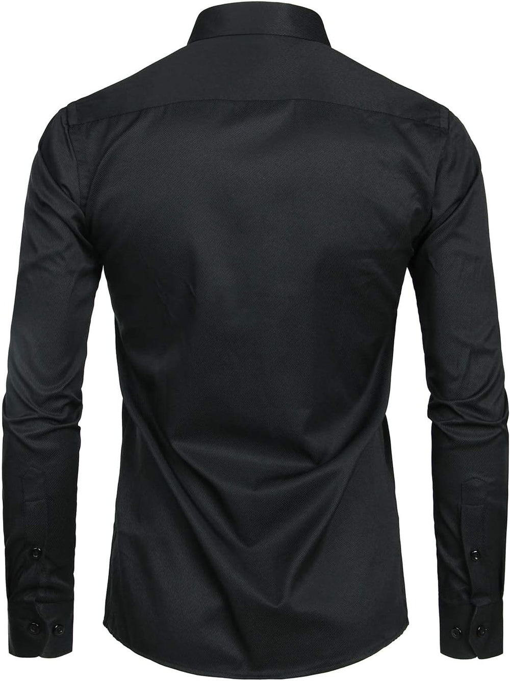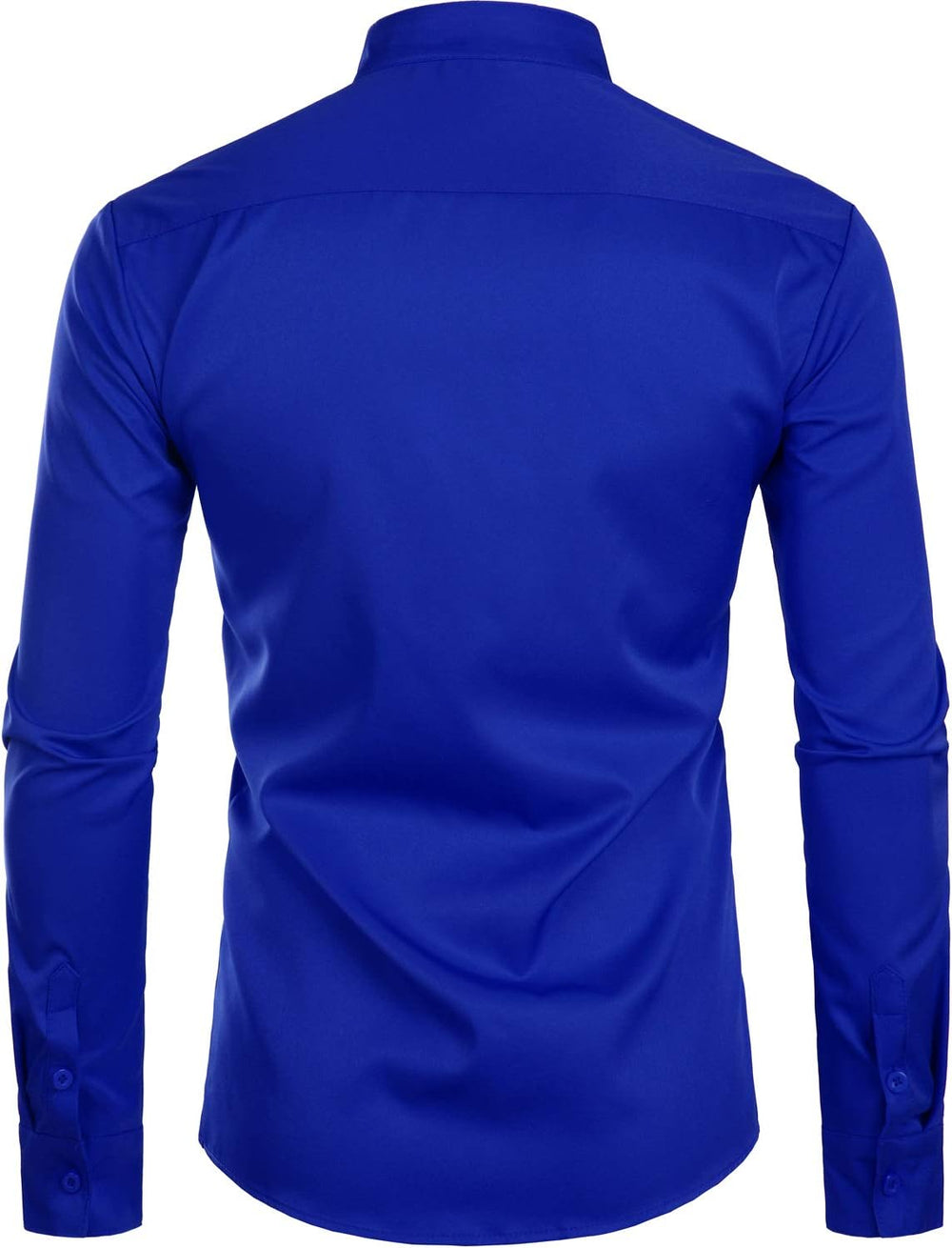 PARKLEES Herren Grandad-Kragen Slim Fit Langarm Casual Button Down Kleid Shirts mit Tasche M Königsb