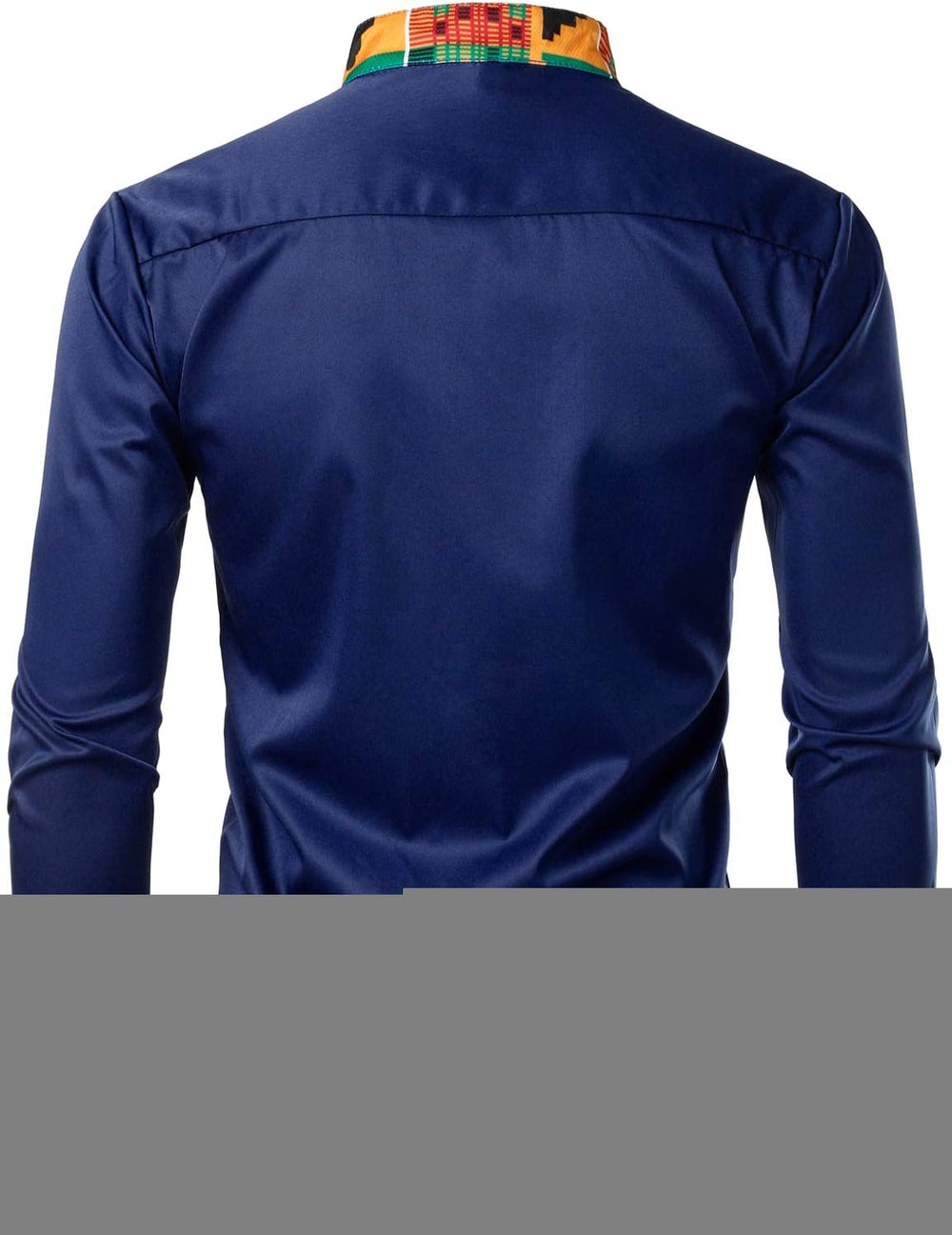 PARKLEES Herren African Tribal Grafik Patchwork Design Slim Fit Langarm Freizeithemd Party Shirt für