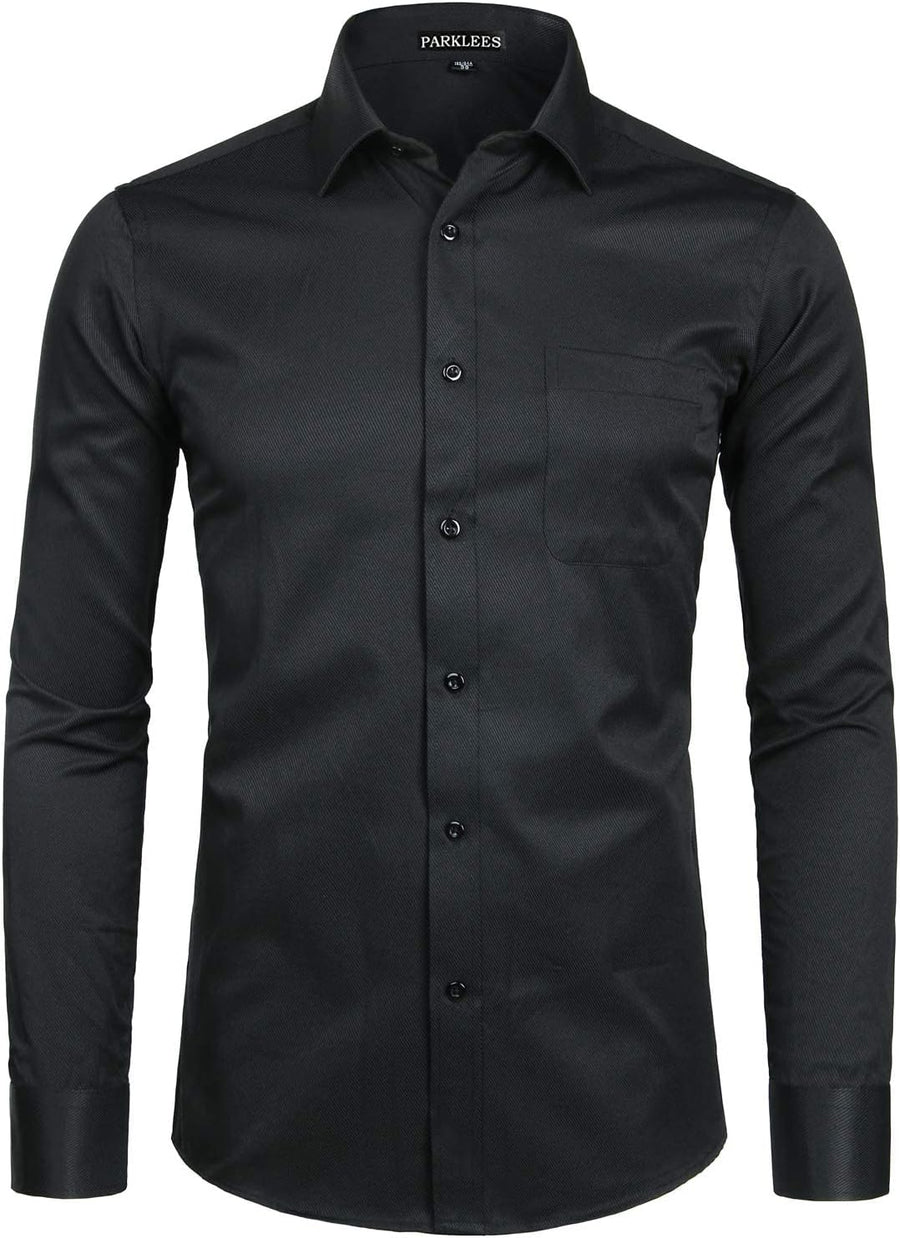 PARKLEES Herren Regular Fit Baumwolle wie Leinen Hemd Casual Langarm Button Down Shirts mit Tasche S
