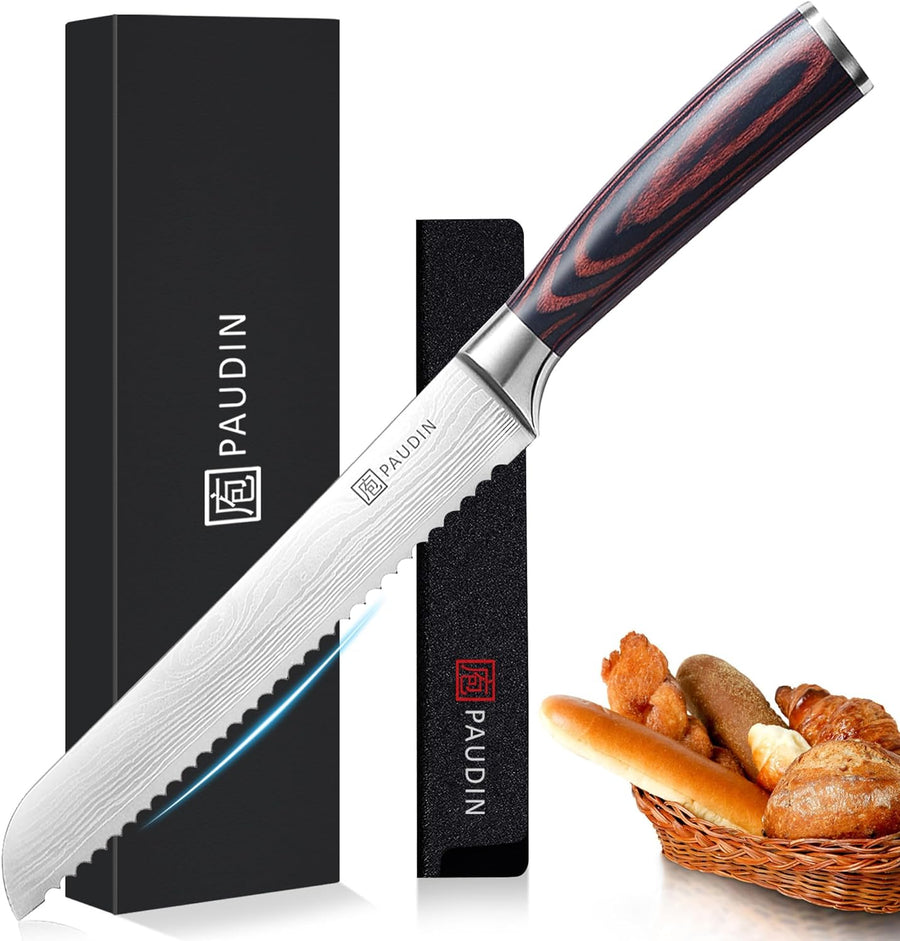 PAUDIN Brotmesser mit Wellenschliff 26 cm aus hochwertigem rostfreiem Edelstahl, extra scharfe Messe