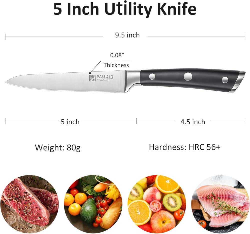 PAUDIN Kochmesser Allzweckmesser Profi 13cm Scharf Küchenmesser Chefmesser aus rostfreiem Deutscher