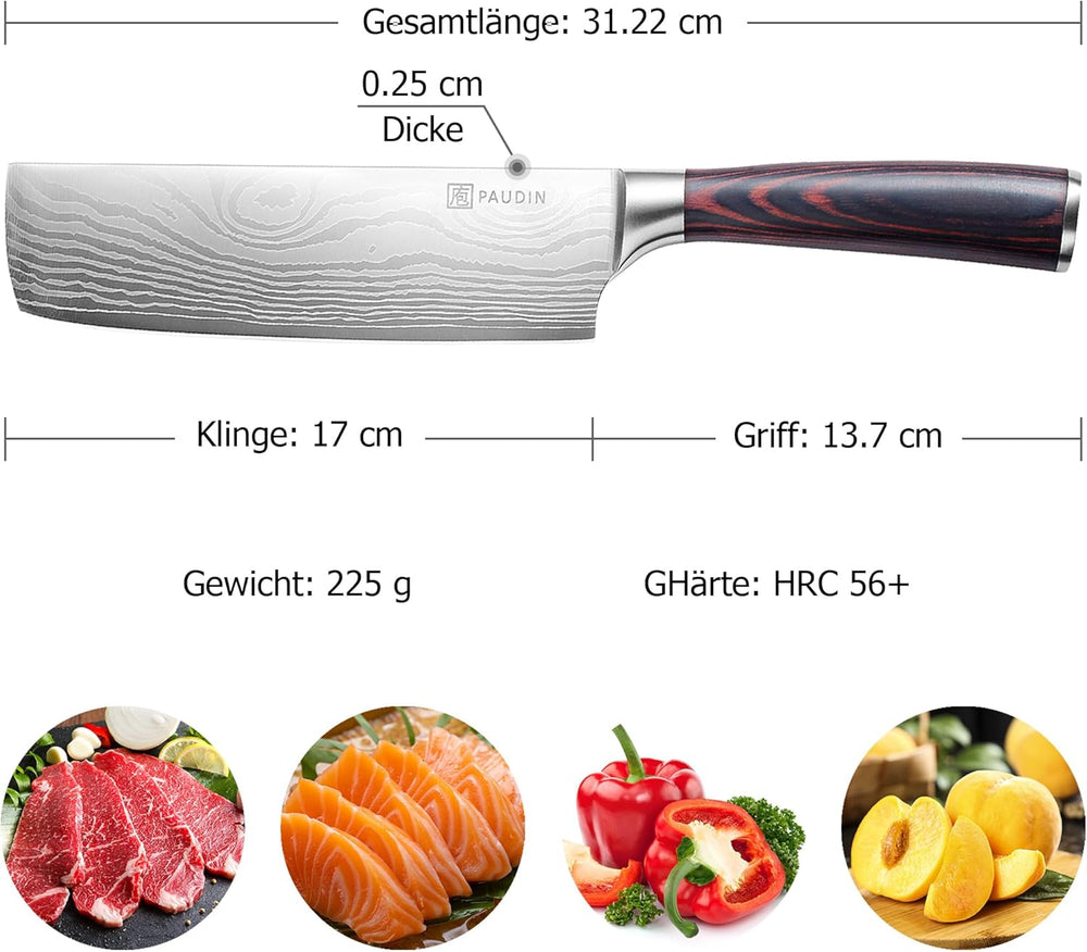 PAUDIN Japanisches messer, Klingenlänge 17cm nariki messer Hackmesser Kochmesser aus hochwertigem Ed