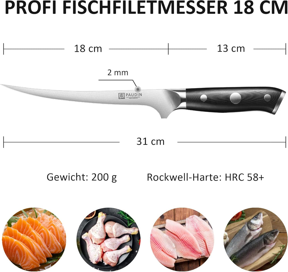 PAUDIN Filetiermesser fisch Messer 18 cm, Filitiermesser Scharf Fisch aus Deutscher Edelstahl 1.4116