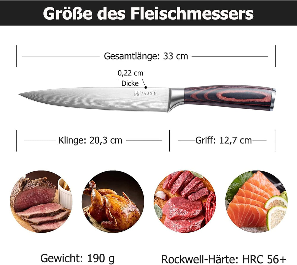PAUDIN Fleischmesser Kochmesser, Klingenlänge 20 cm Küchenmesser Messer Chefmesser Allzweckmesser, U