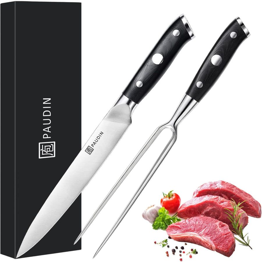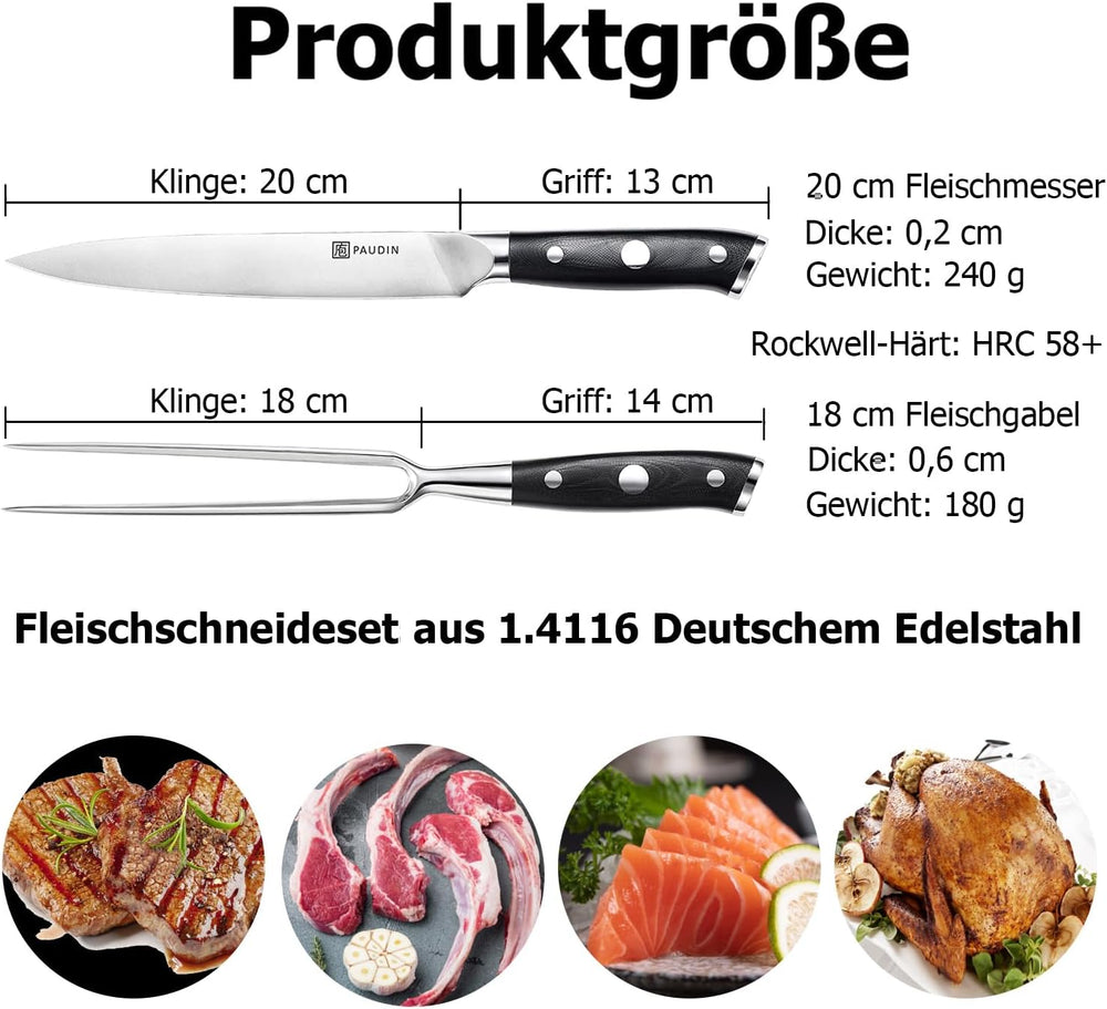 PAUDIN Küchenmesserset 2tlg, Messerset mit Fleischmesser 20cm und Fleischgabel 18cm, Ultra Scharfe T