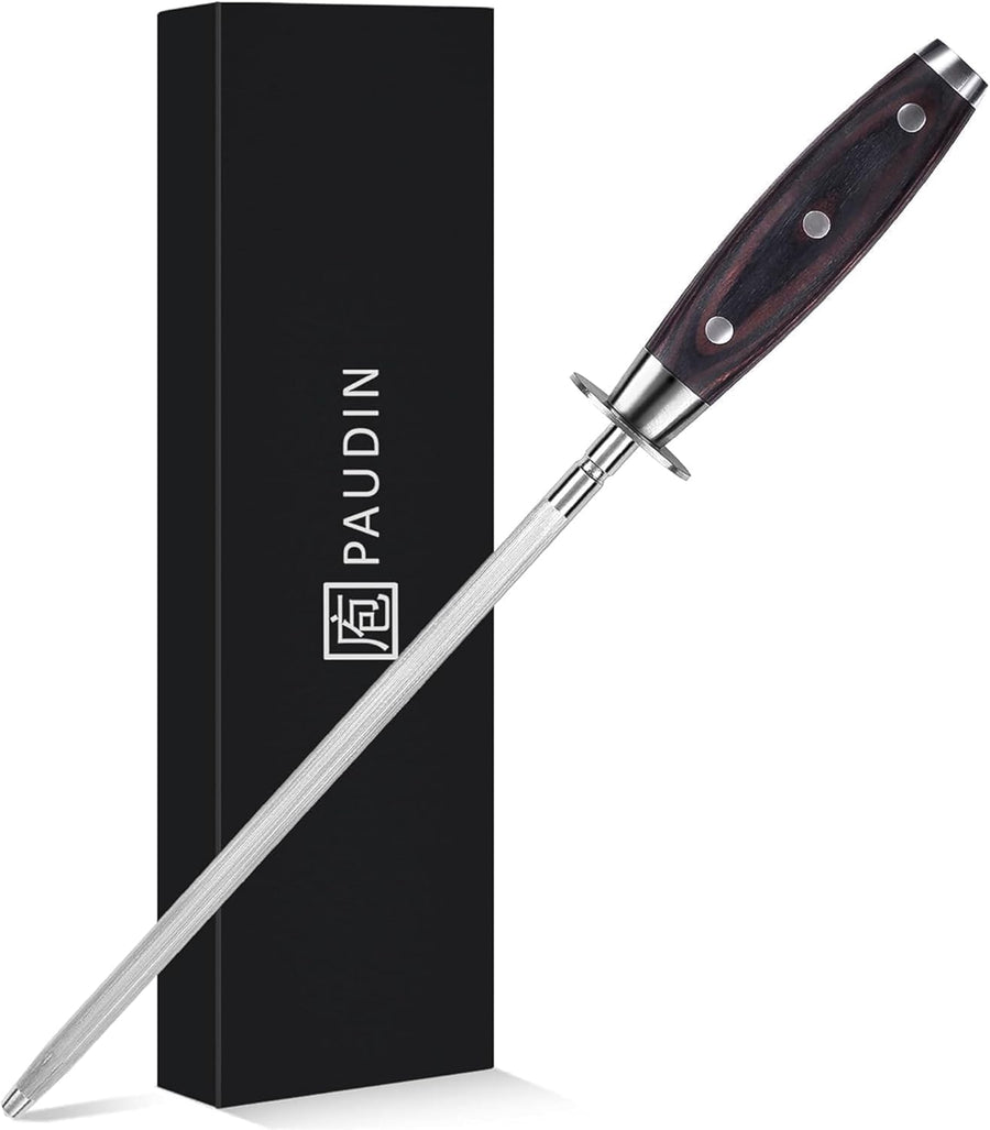 PAUDIN Wetzstahl 25 cm, Profi Messerschärfer Wetzstahl für Messer – aus gehärtetem Spezialstahl mit