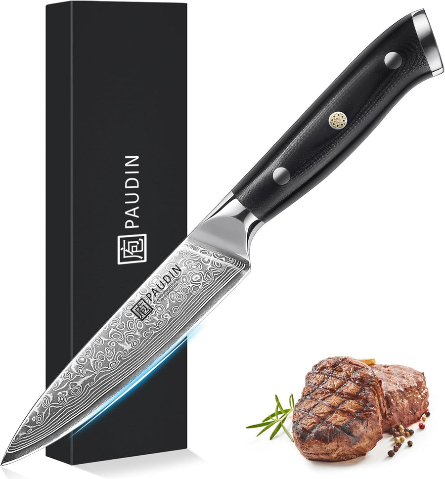 PAUDIN Damastmesser 13 cm Allzweckmesser Chefmesser Kochmesser profi Küchenmesser scharfes Messer mi