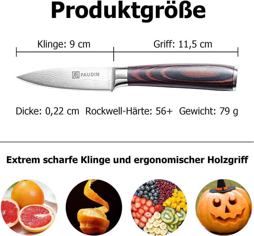 PAUDIN 9cm Gemüsemesser, Scharf Obstmesser Schälmesser Küchen Messer Ergonomischer Griff Deutscher E