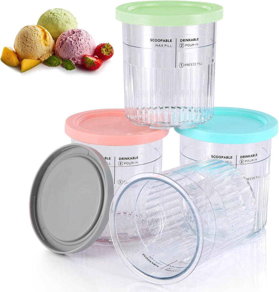 PCTTOIL 4 Stück Eiscremebehälter und Deckel kompatibel mit Ninja Creami Deluxe Ice Cream Makers NC50