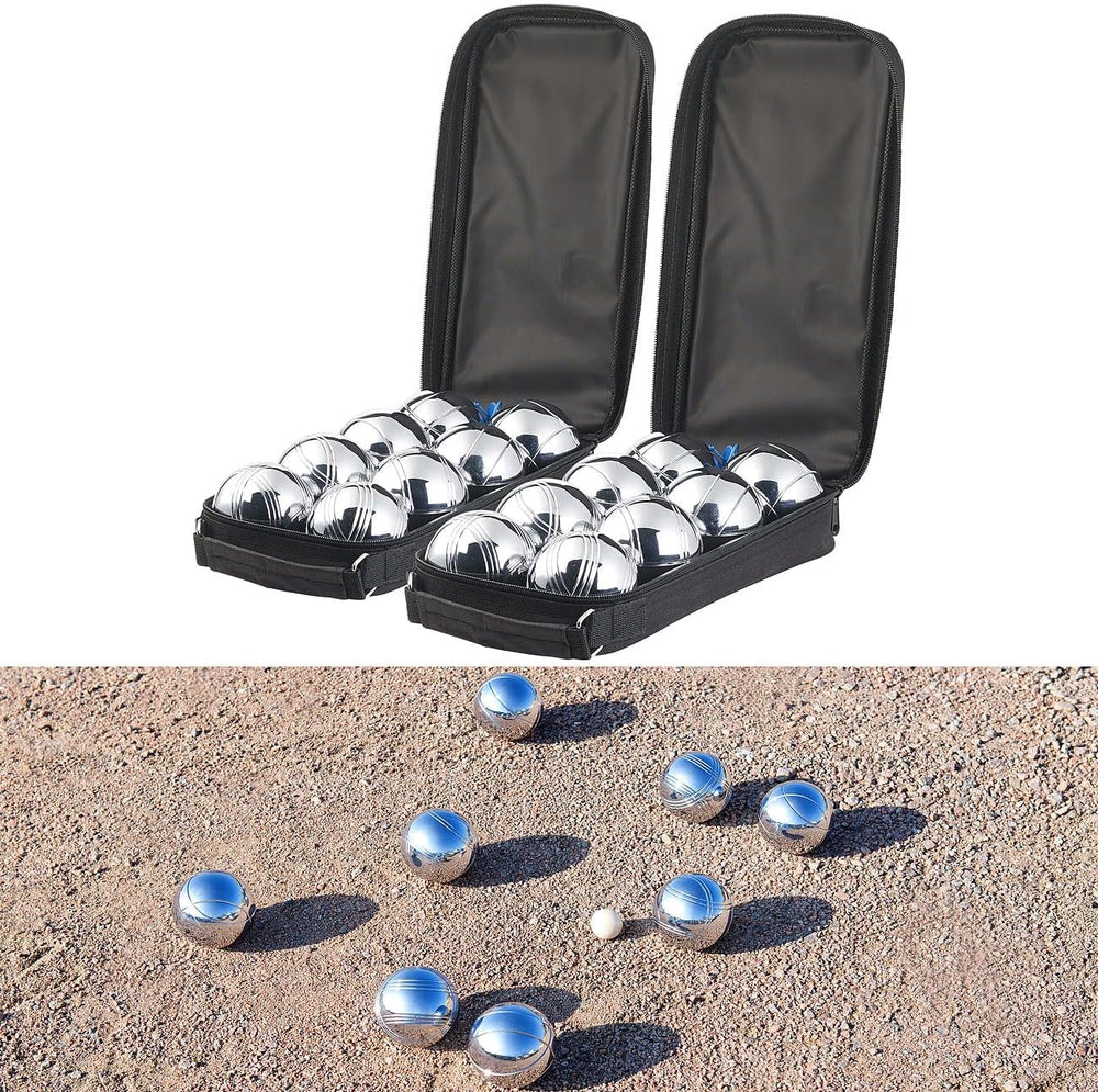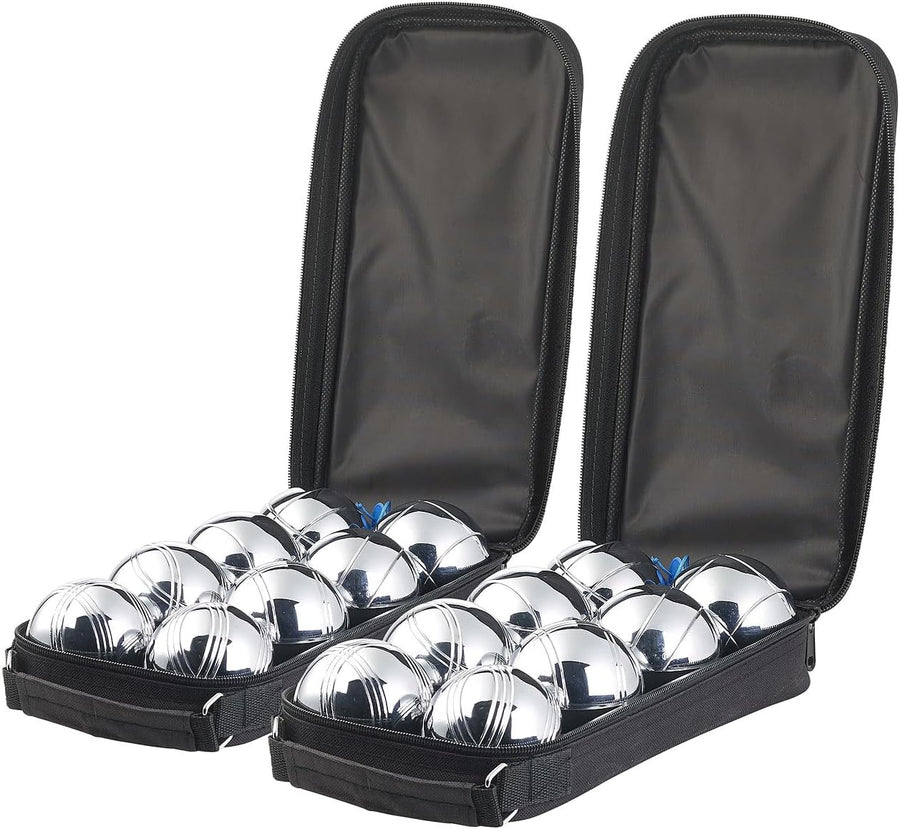 PEARL Boccia Kugeln: 2er-Set Boule- & Boccia-Spiele: 16 Metall-, 2 Holz-Kugel, Tasche (Bocciaspiele,