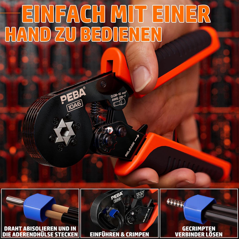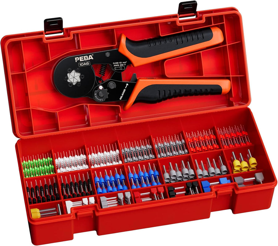 PEBA Crimpzange Set, Aderendhülsen Zange 0,25–10mm² mit 21 Arten Isoliert Aderendhülsen Set, Premium