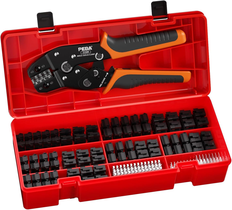 PEBA Premium Crimpzangen Set inkl. 24 Stile Dupont 2,54mm/JST-XH/JST-SM 2,5mm Stecker - Profi Zange