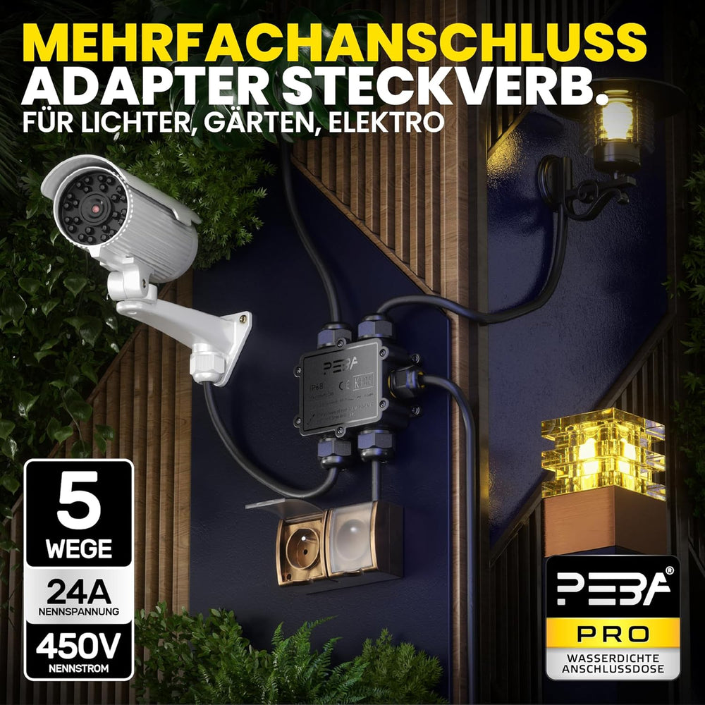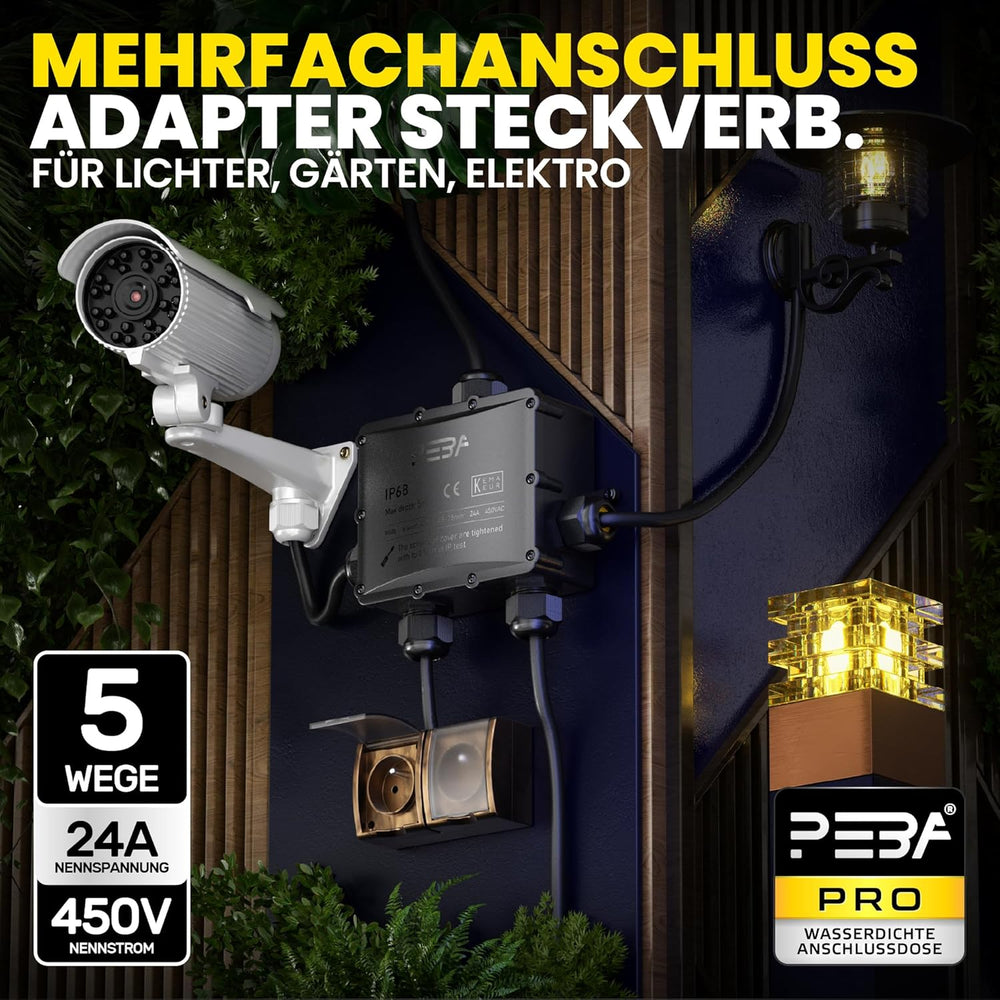 PEBA® Abzweigdose IP68 Abzweigdose Kabelverbinder Wasserdicht Aufputz Verteilerdose 4-fach für Kabe