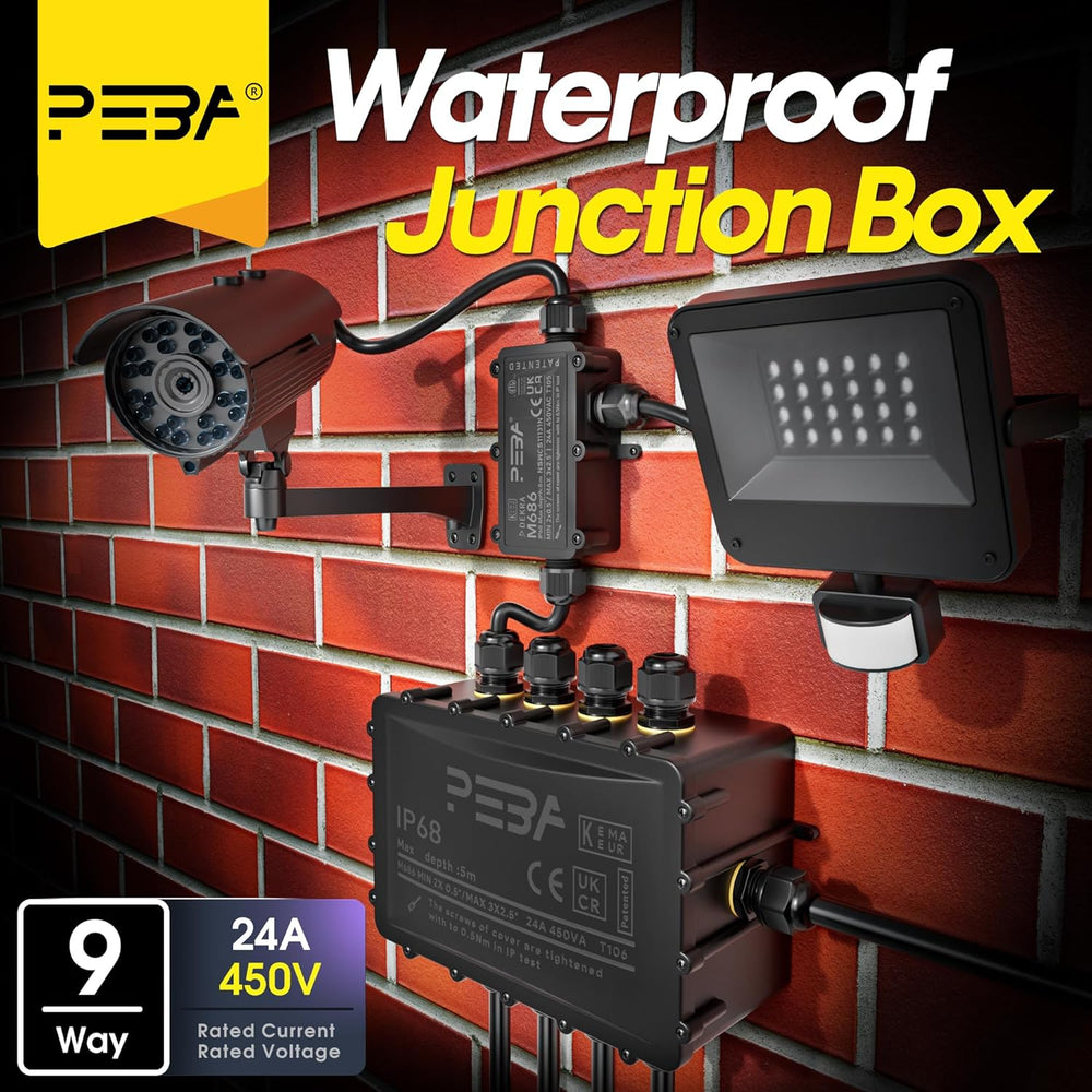 PEBA® Abzweigdose IP68, Erdkabel Klemmdose Verbindungsdose, Übergrosse 9 Wege Junction Box, Klemmkas