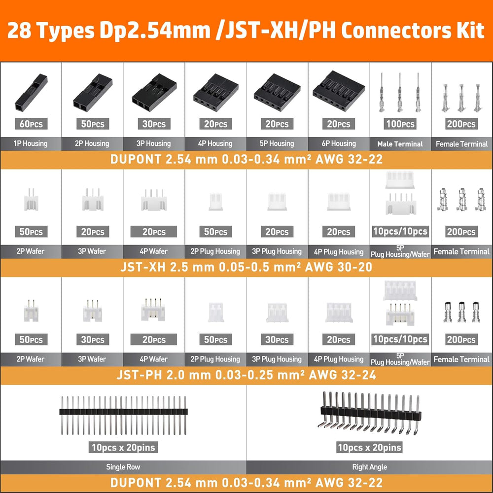 PEBA Crimpzange Stecker Set - 28 Stile JST-PH 2,0/JST-XH/Dupont 2,54mm Steckverbinder Kit mit Abisol