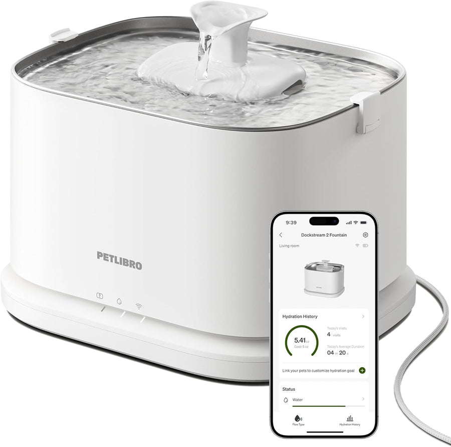PETLIBRO Verbesserter Katzenbrunnen, Dockstream 2 Smart App-Überwachungs Trinkbrunnen für Katze, 3L