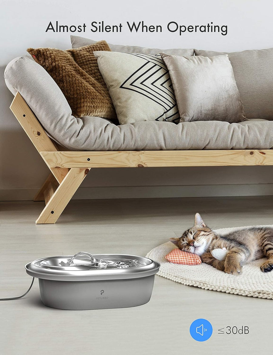PETLIBRO Trinkbrunnen für Katze Ultraleise, 2,1L Katzenbrunnen Edelstahl mit Zwei Durchflussmodi, Si